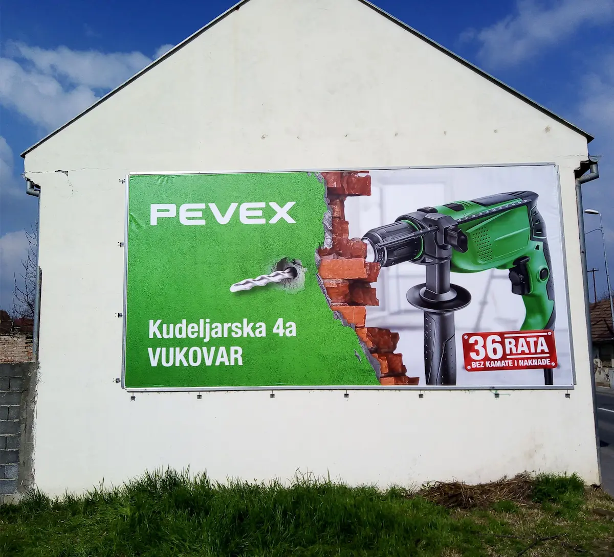 - Fleksibilne dimenzije cerada – od manjih bannera do pročelja zgrada